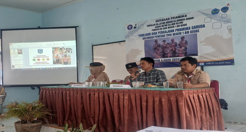Jumat, 14 juni 2024. kegiatan pengajuan dan penilaian pramuka garuda golongan penegak SMA N I Airgegas yang terdiri dari 5 org, 2 putra, 3 putri turut serta dari SMA N 3 Toboali berjumlah 1 org putri di SMA N 1 Airgegas. Acara penilaian berlangsung khdmat dan lancar,turut hadir dlm giat tsb Kak Edy sugara, Kak Sri mawarni, Kak Roslina.S, Kak Nilawati, kak Syaukat(And.Ranting), Kak Reka (ast. Pembina SMA 3 Toboali), kamabigus beserta, semua orangtua wali calon pramuka garuda 2 gudep. Terimakash kpd kakwarcab dan andalan cabang yg berkenan hadir sekaligus menjadi tim penilai yg luar biasa mengantarkan peserta didik kami menjadi pramuka garuda penegak, kwarcab bangka selatan th. 2024. semoga bisa sll menjadi teladan dan bermnfaat utk ummat. Aamin ya Rabb. Wassalam wr wb..