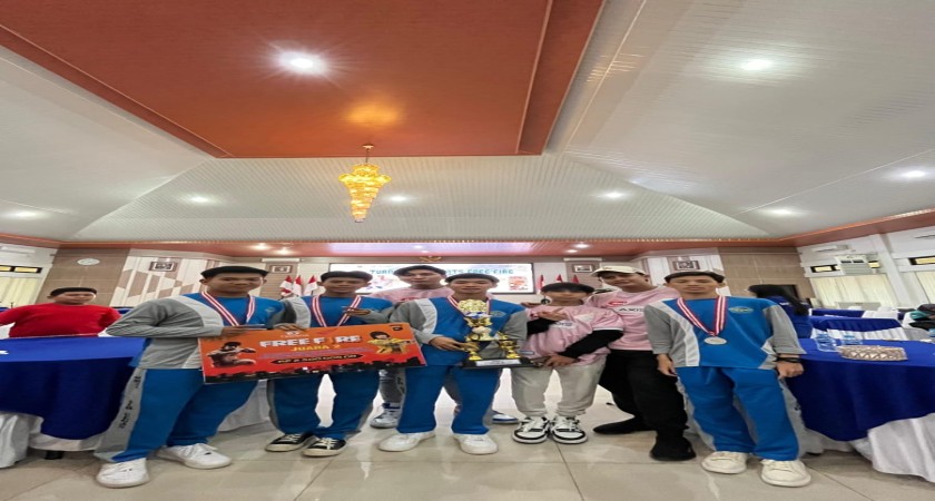 Pembagian Juara free fire bhayangkara tingkat SMA/SMK dalam rangka hari bhayangkara ke 78 oleh Polda Kepulauan Bangka Belitung. Dimana Juara ke 2 di memenangkan oleh siswa SMA Negeri 1 Air gegas. 21 juni 2024.